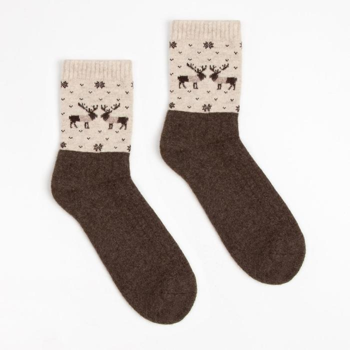 Носки мужские из монгольской шерсти, цвет шоколад/олени, размер 29 (43-45)