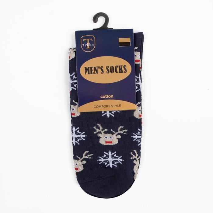 Носки мужские «Олени и снежинки» цвет синий, размер 29