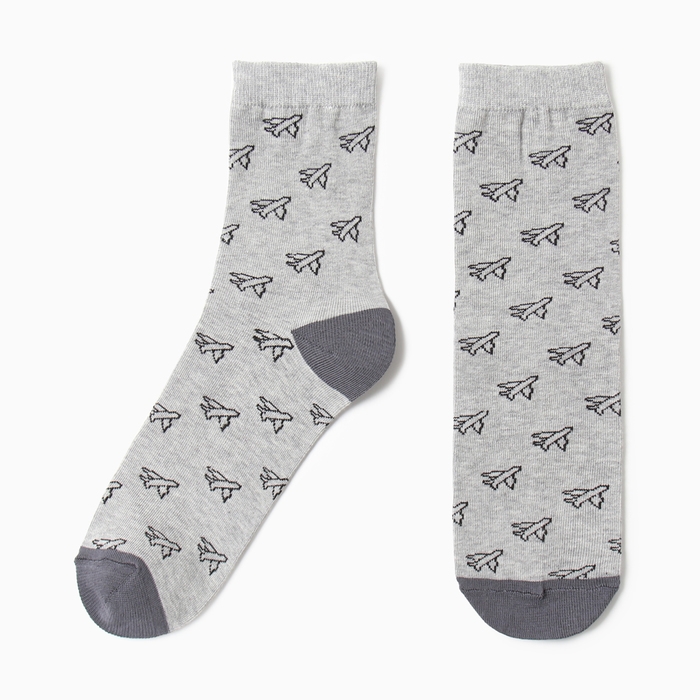 Носки мужские "Самолёты", цвет серый, размер 29