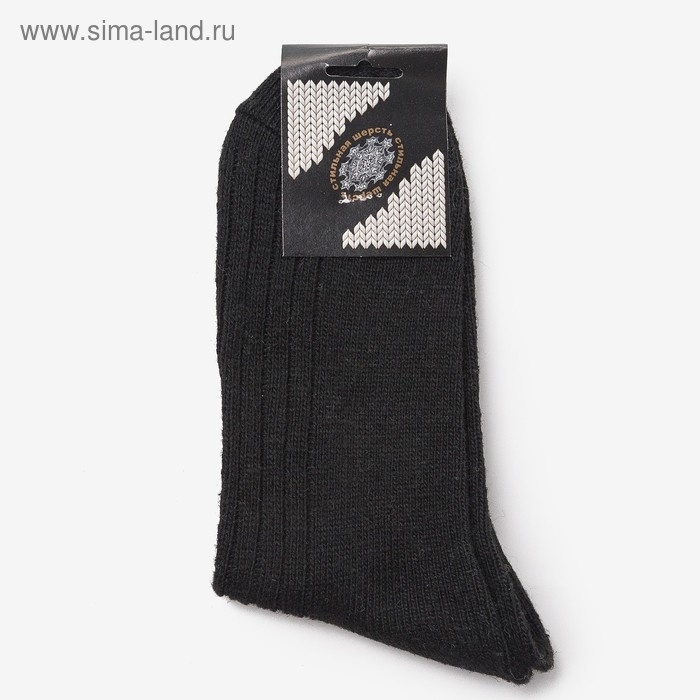 Носки мужские шерстяные цвет чёрный рубчик, размер 29