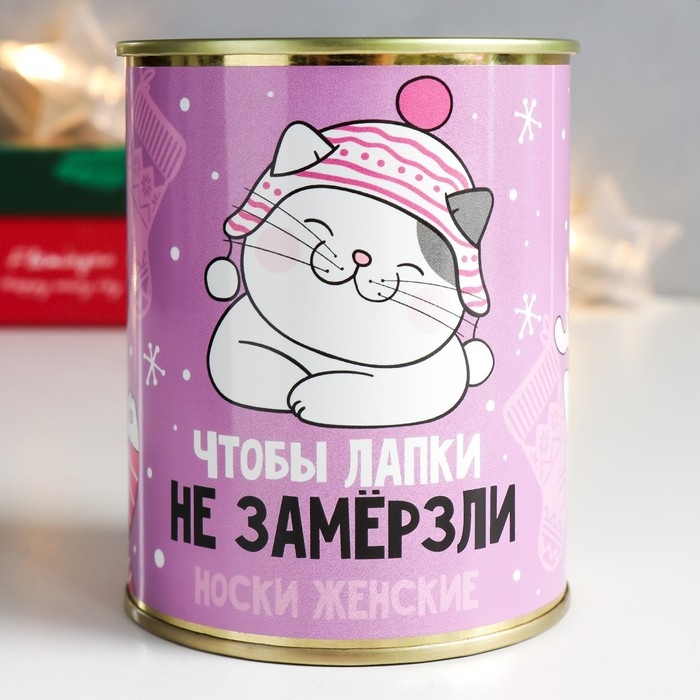 Носки в банке "Чтобы лапки не замерзли" (внутри носки женские, цвет белый)