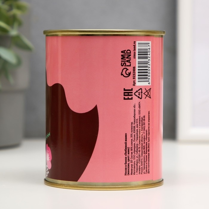Носки в банке "Любимой маме" (внутри носки женские, цвет белый)