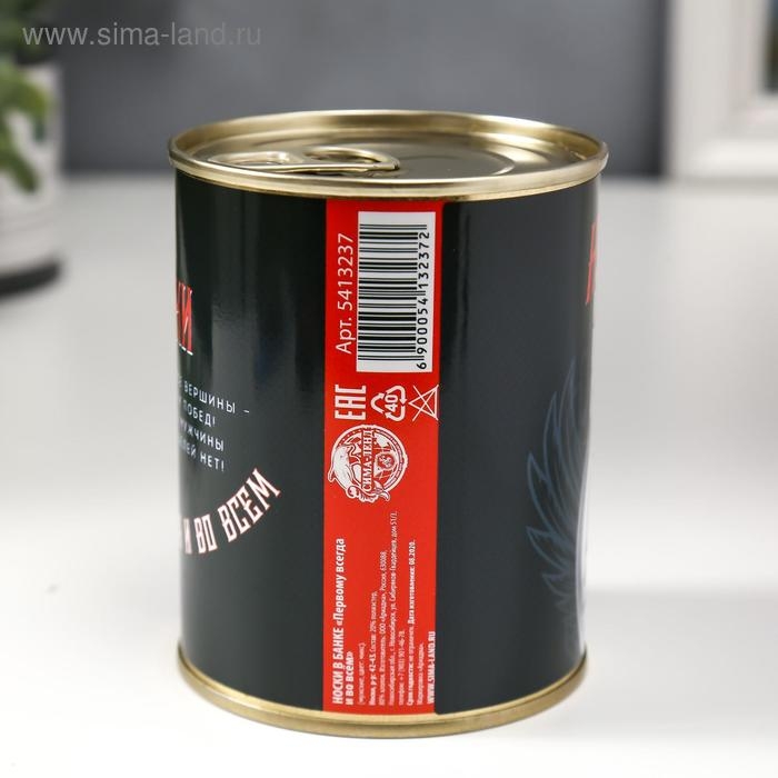 Носки в банке "Первому всегда и во всём" (внутри носки мужские, цвет чёрный)
