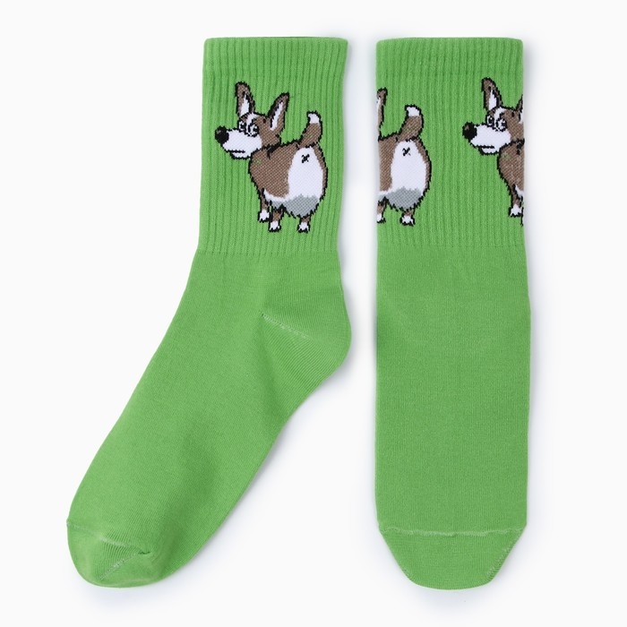 Носки женские "Корги", цвет зеленый, размер 36-40
