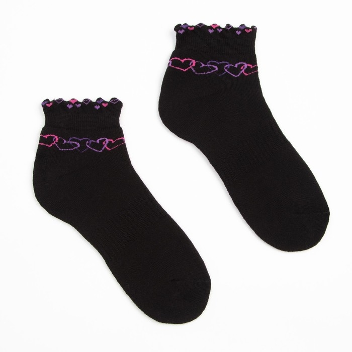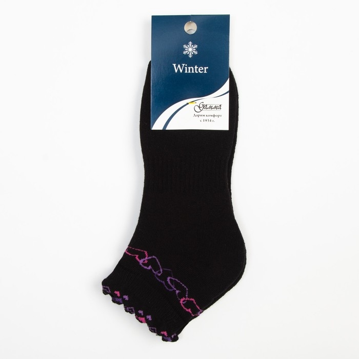 Носки женские махровые «Сердечки», цвет чёрный, размер 23-25