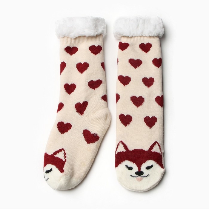 Носки женские с мехом, цвет розовый/волк размер 36-40