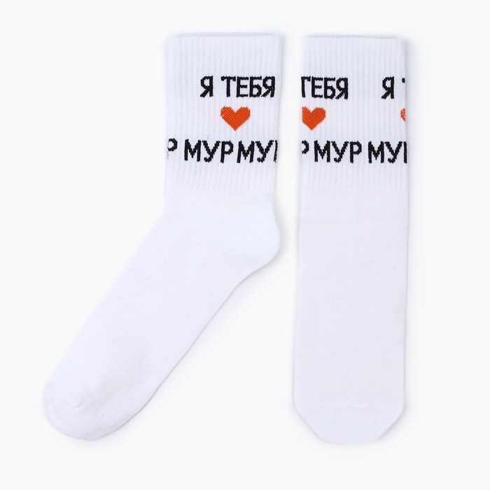 Носки женские "Я тебя мур-мур", цвет белый, размер 36-40