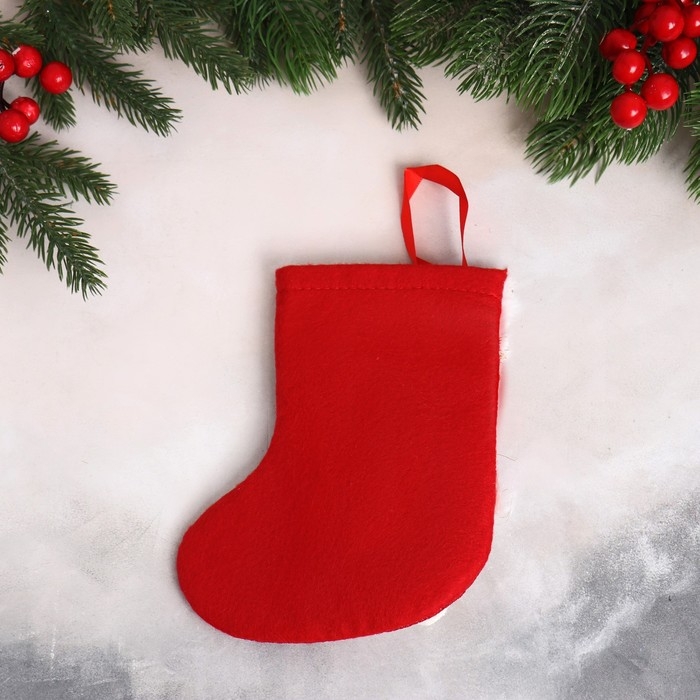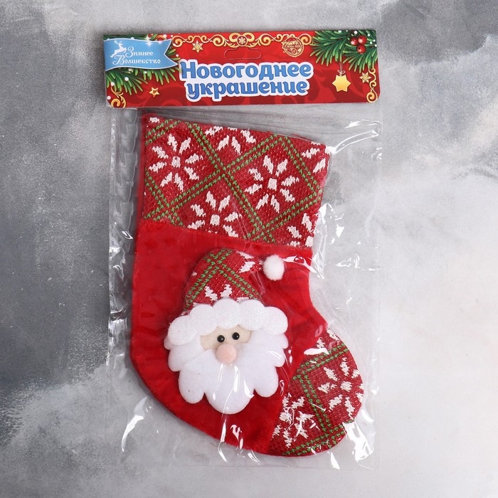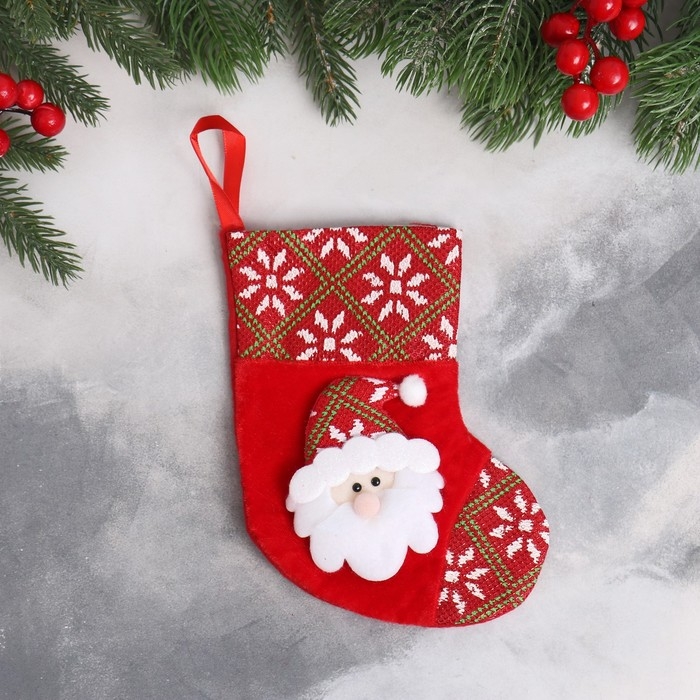 Носок для подарков "Дед Мороз в колпаке" 13х17 см, красный
