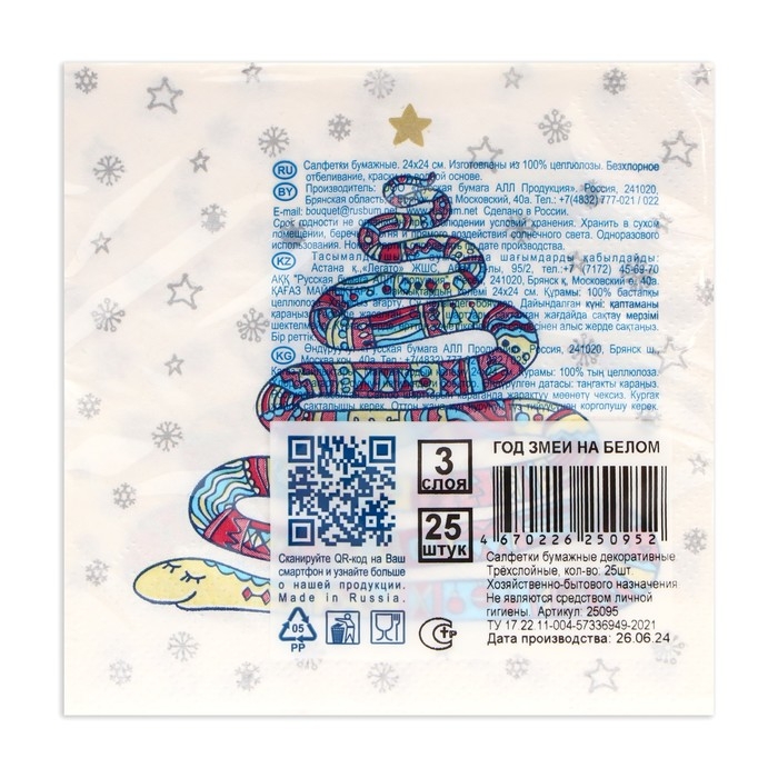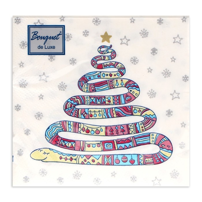 Новогодние салфетки бумажные Bouquet de Luxe «Год змеи на белом», 3 слоя, 24х24 см, 25 шт.