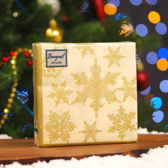 Новогодние салфетки бумажные Bouquet de Luxe «Снегопад Золото», 3 слоя, 24х24, 25 шт.