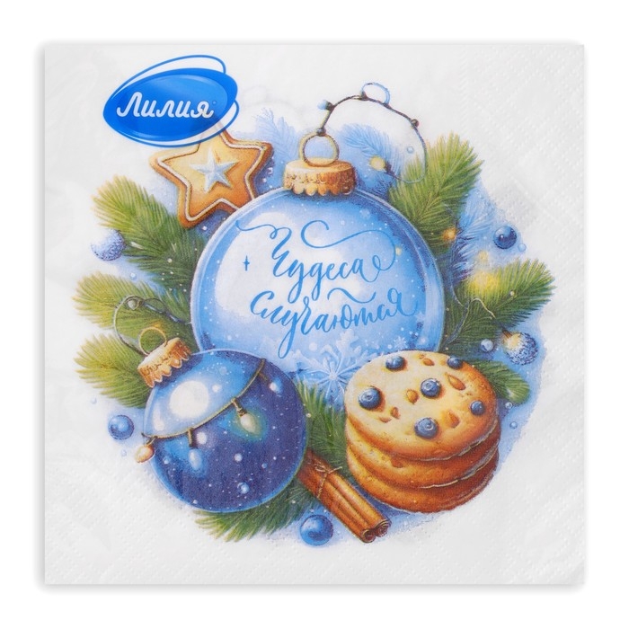 Новогодние салфетки бумажные Лилия «Чудеса случаются», 2 слоя, 33х33 см, 20 шт