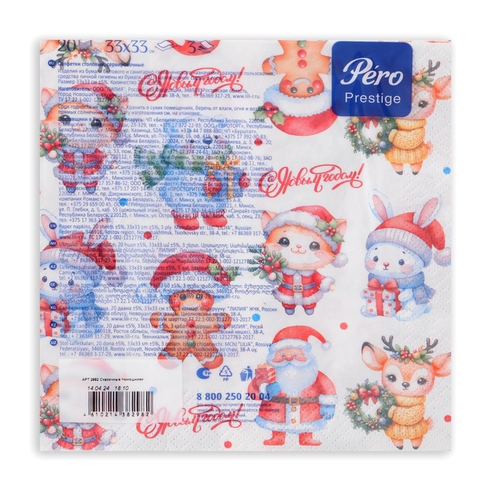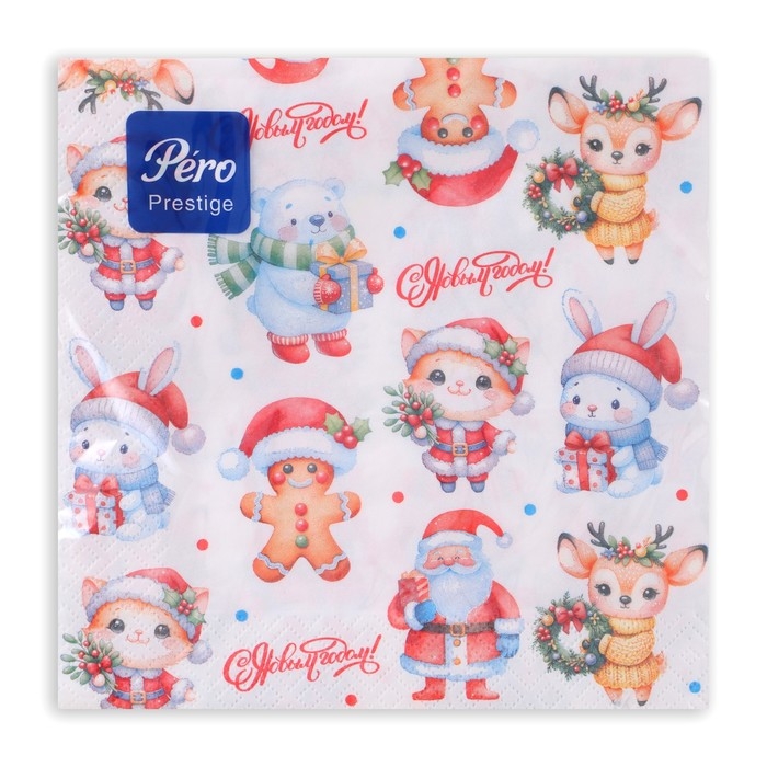 Новогодние салфетки бумажные Pero Prestige «Сказочные помощники», 3 слоя, 33х33 см, 20 шт