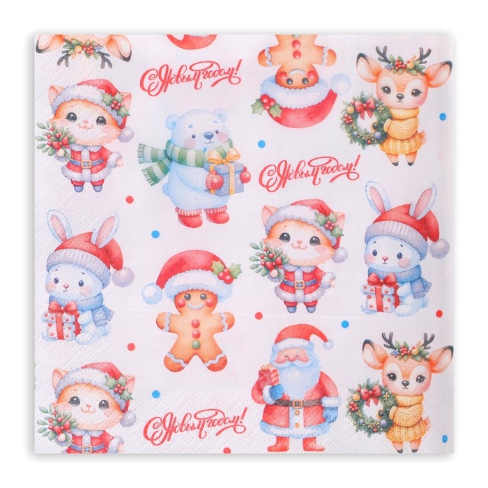 Новогодние салфетки бумажные New Line Fresco «Новогодний ёжик» 2 слоя, 33х33 см, 20 шт