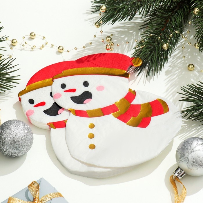 Новогодние салфетки бумажные «Снеговик», 2 слоя, 20 шт.