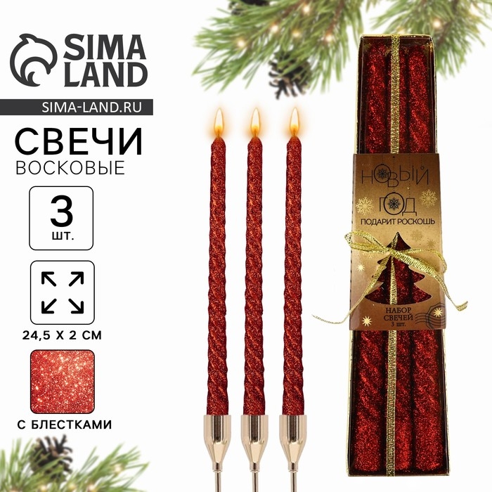 Новогодние свечи витые «Новый год: Новый год» 3 шт
