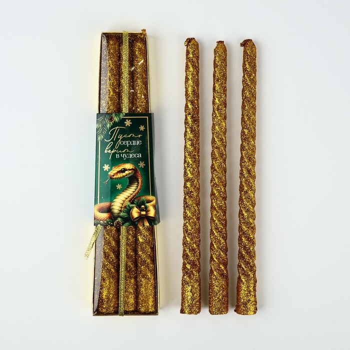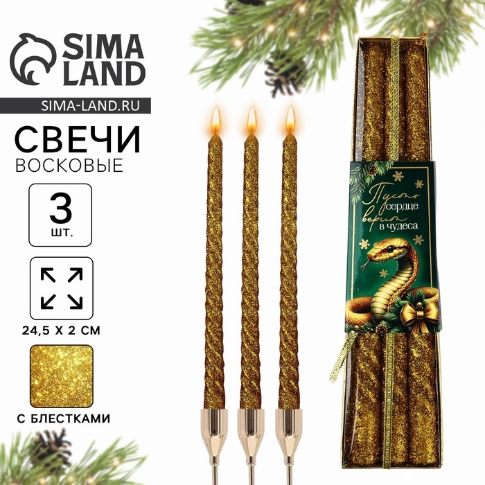 Новогодние свечи витые «Новый год: Сердце верит в чудеса» 3 шт