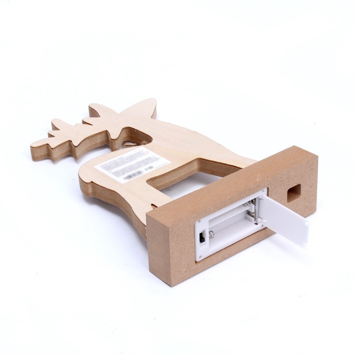 Изделие выполнено из экологичного материала — дерева и работает от батареек.
