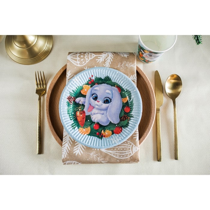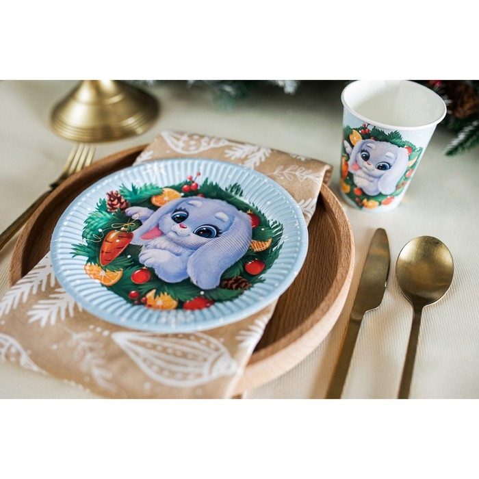 В наборе вы найдете все, что нужно для комфортной сервировки: 6 ярких картонных тарелок, 6 симпатичных стаканчиков и красочную гирлянду "С Новым Годом".