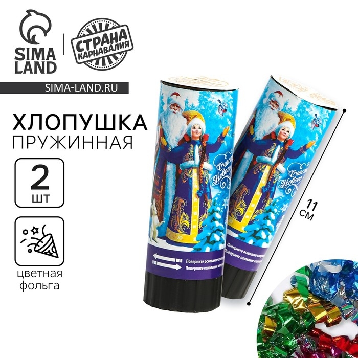 Новогодний набор хлопушек «Счастливого Нового года!», 2 шт., 11 см