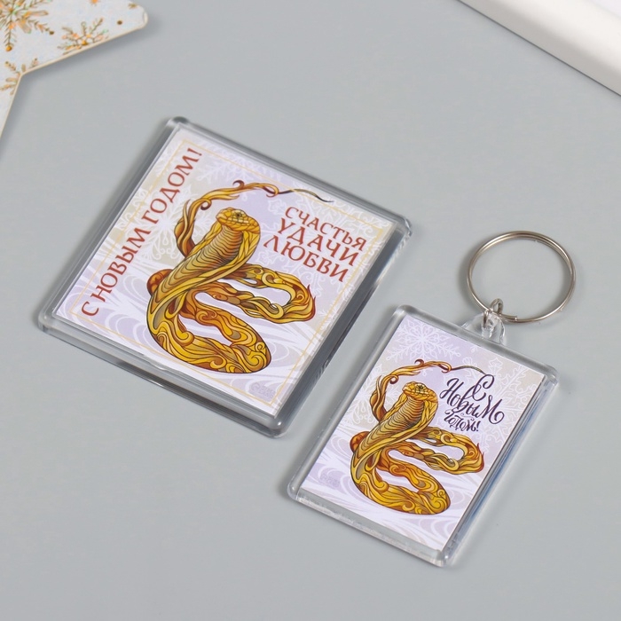Новогодний набор "Змея. Линии" (брелок 3,5х5 см, Новогодний магнит 5,7х5,7 см)