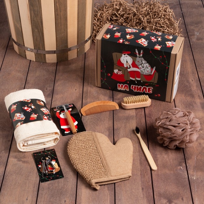 Новогодний подарочный набор Этель "На чиле", полотенце 50х90 см и аксессуары