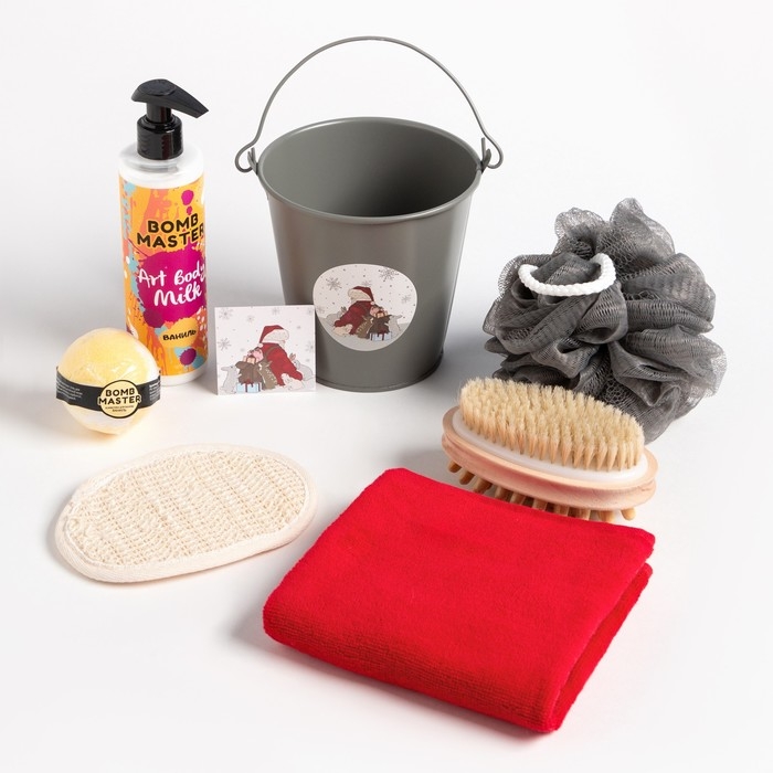 Бомбочка для ванн, Ведёрко, Молочко для тела, Мочалка, Мочалка-спонж, Открытка, Полотенце, Щётка-массажер