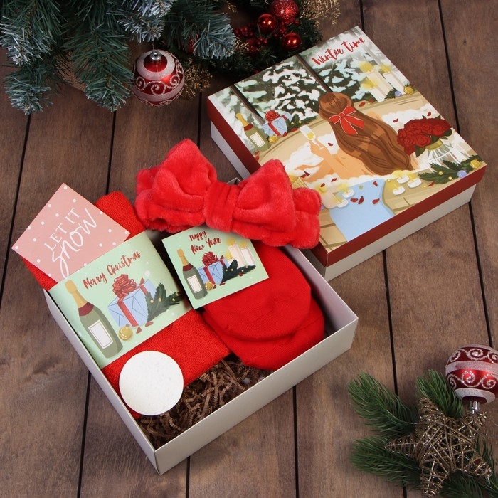 В состав набора входит: Носки, Открытка, Повязка, Полотенце, Спонж