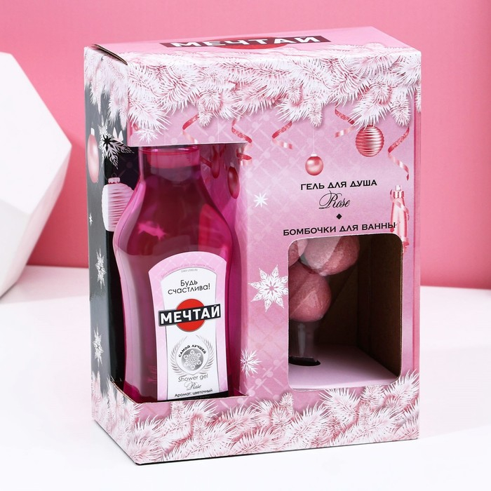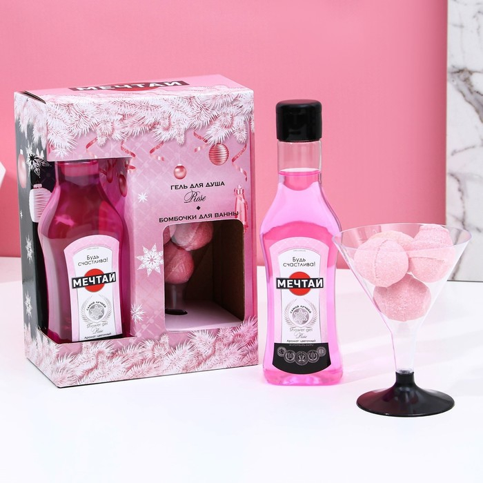 Новогодний подарочный набор косметики «Мечтай», гель для душа фо флаконе мартини 250 мл и бомбочки для ванны 4 х 20 г, Новый Год