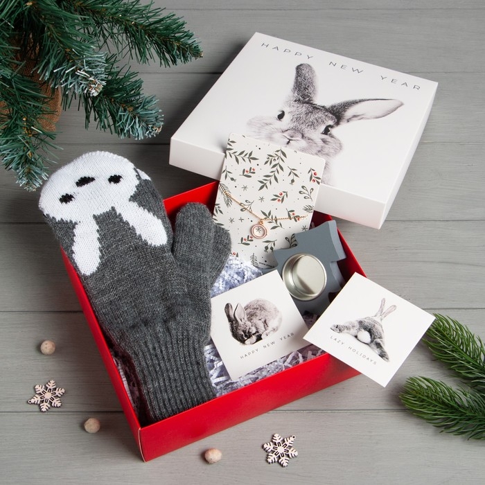 Новогодний подарочный набор "Зайка", варежки р-р 19 и аксессуары
