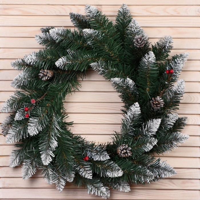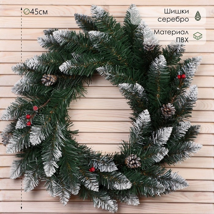 Новогодний венок "Интерьерный белоснежный" (шишки серебро+ягоды) 45см