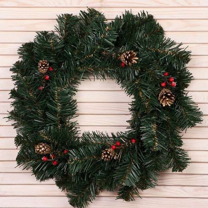 Новогодний венок "Рождественский" шишка золото+ягода 45см