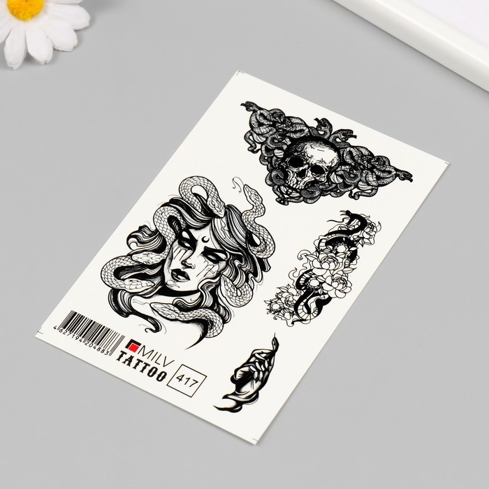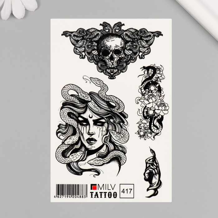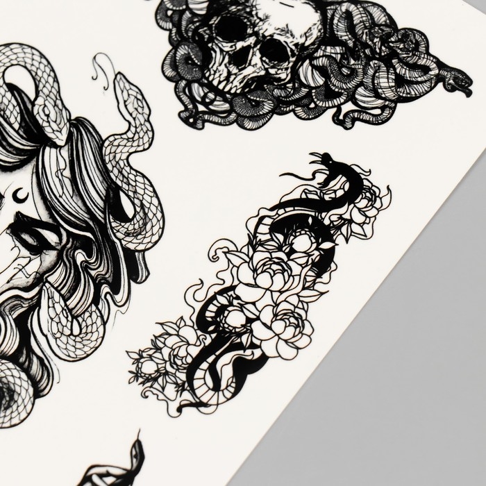 Новогодня татуировка на тело "Череп, Горгона, змеи" 10х15 см