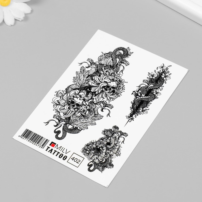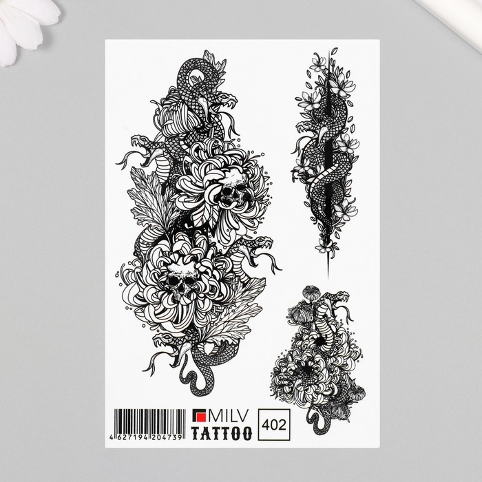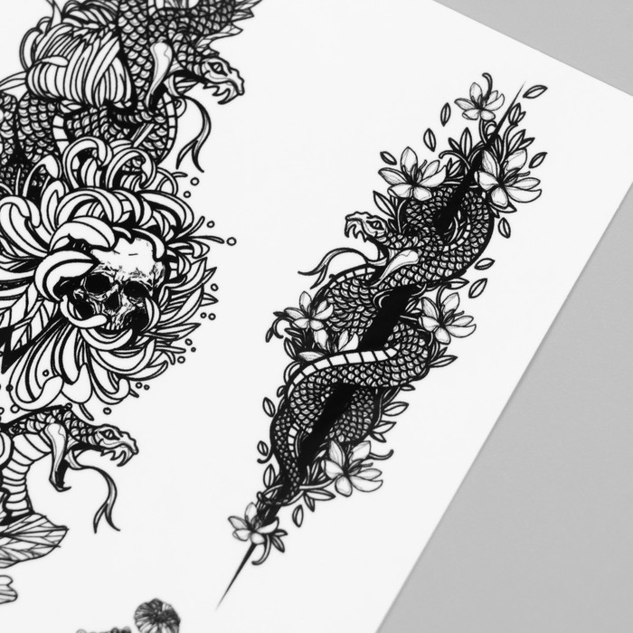 Новогодня татуировка на тело "Черепа и змеи" 10х15 см