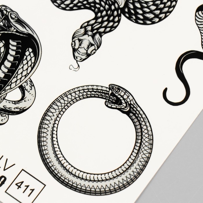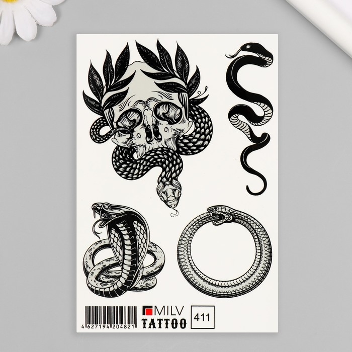 Новогодня татуировка на тело "Змея, череп" 10х15 см