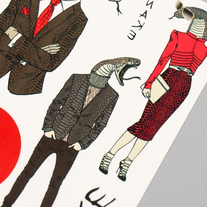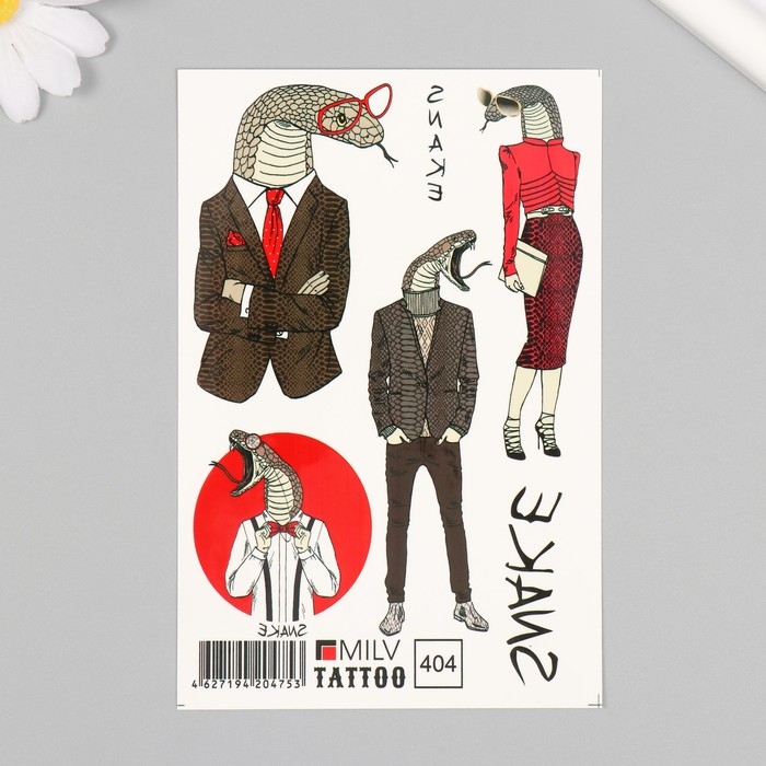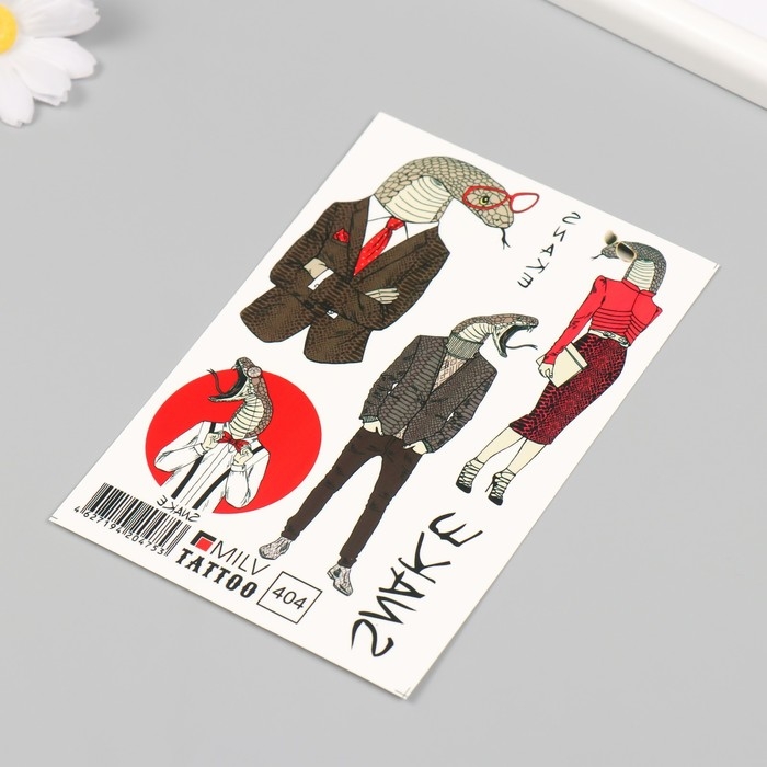 Новогодня татуировка на тело "Змея в костюме" 10х15 см