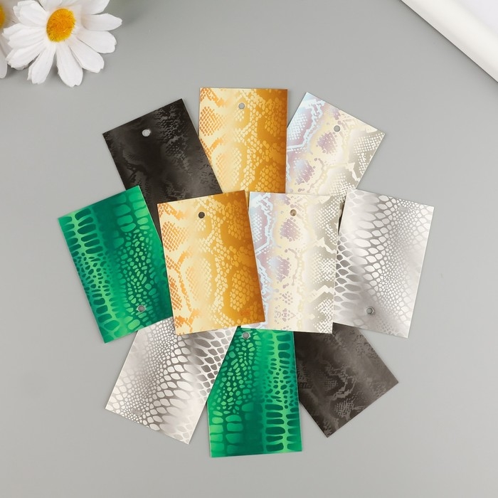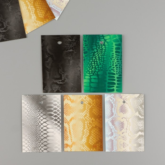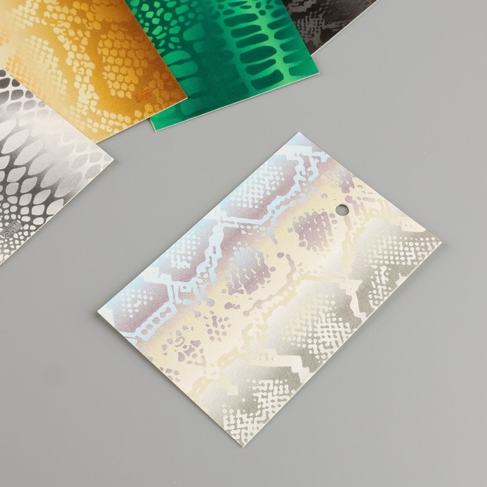 Новогодняя бирка картон "Чешуя" Новогодний набор 10 шт (5 видов) 4х6 см