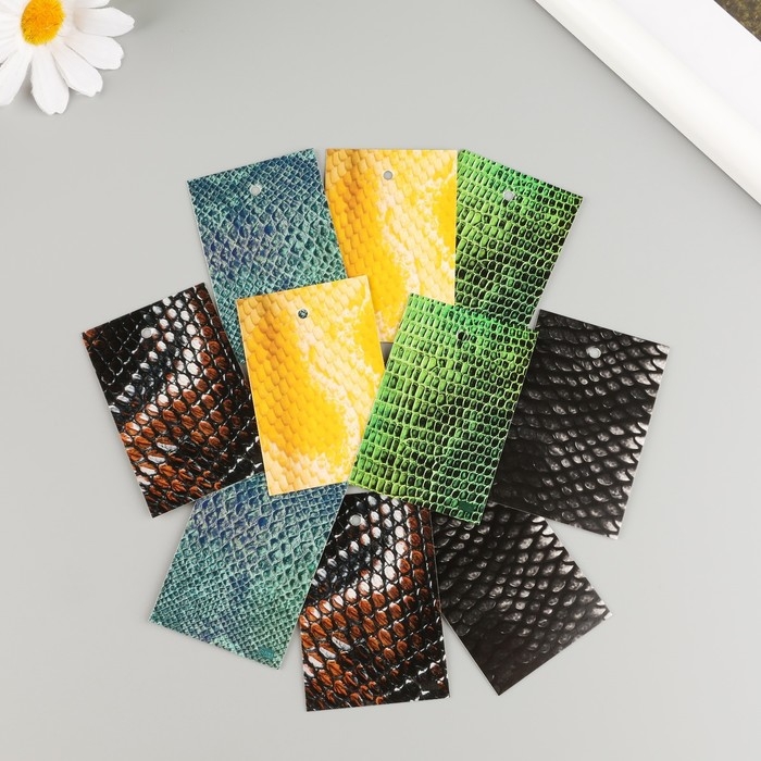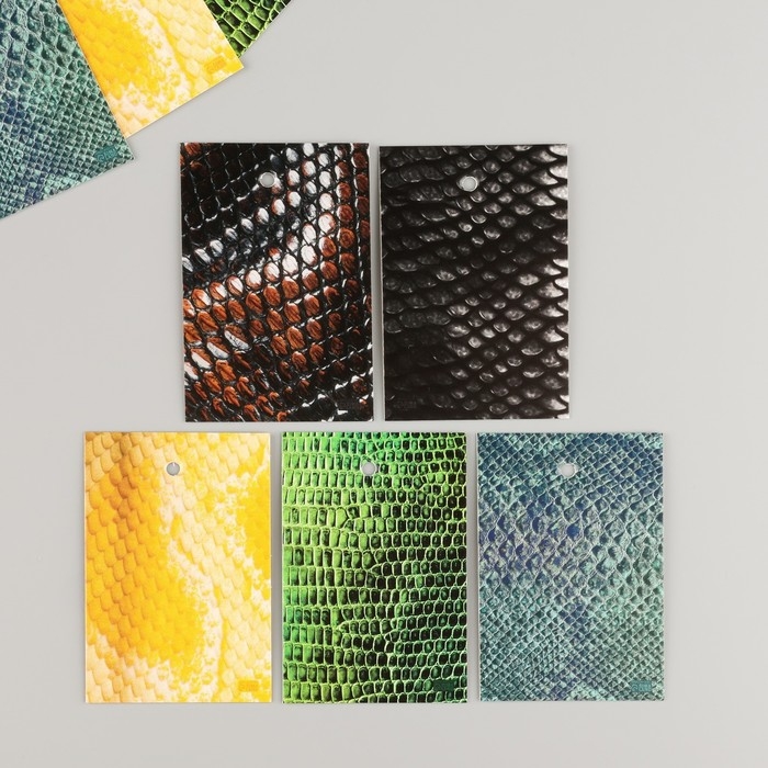Новогодняя бирка картон "Кожа змеи" Новогодний набор 10 шт (5 видов) 4х6 см