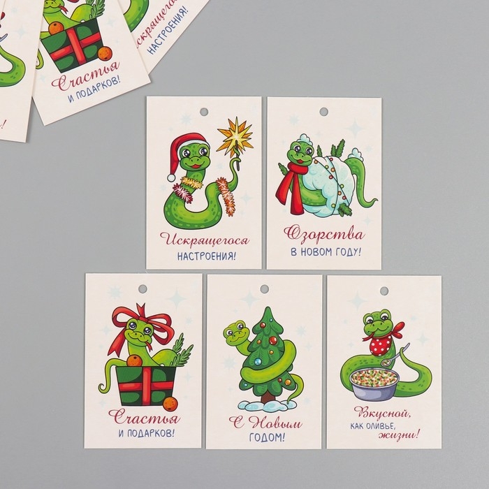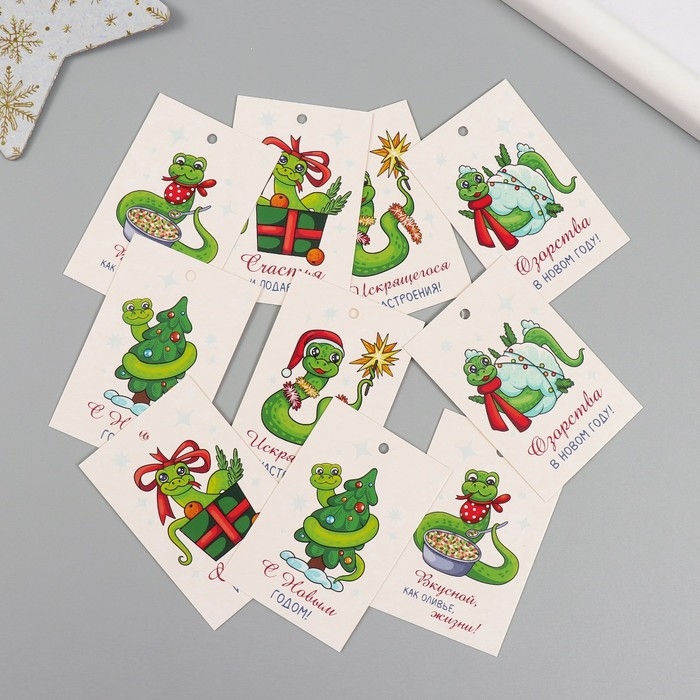 Новогодняя бирка картон "Озорства в Новом году!" Новогодний набор 10 шт (5 видов) 4х6 см