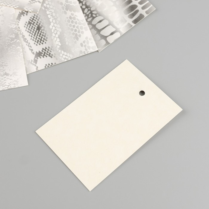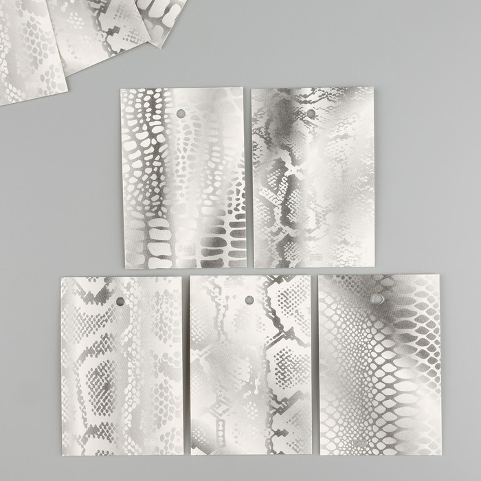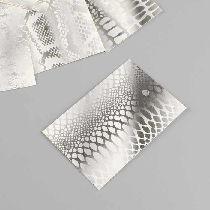 Новогодняя бирка картон "Змеиная текстура", серебро, набор 10 шт (5 видов) 4х6 см