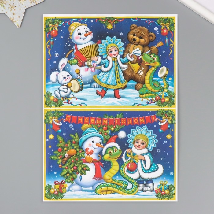 Новогодняя декупажная карта "Хоровод со змейкой", плотность 45 г/м2, формат А4