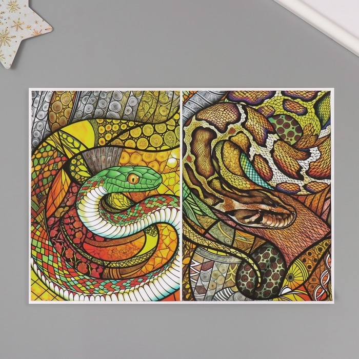 Новогодняя декупажная карта "Витраж. Змеи", плотность 45 г/м2, формат А4