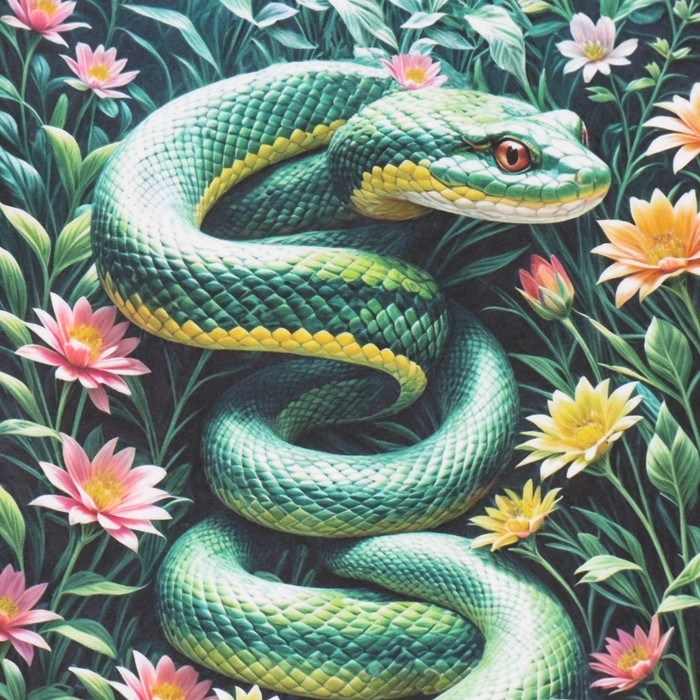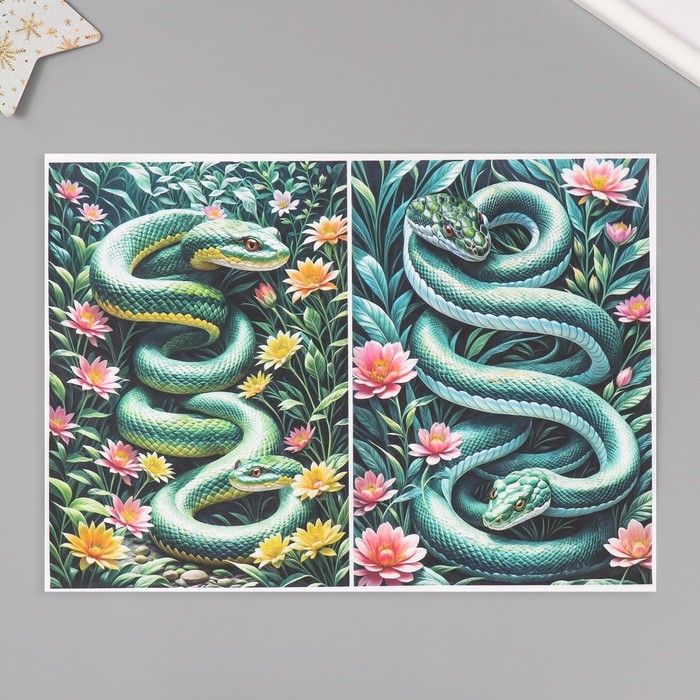 Новогодняя декупажная карта "Змеи в цветах", плотность 45 г/м2, формат А4