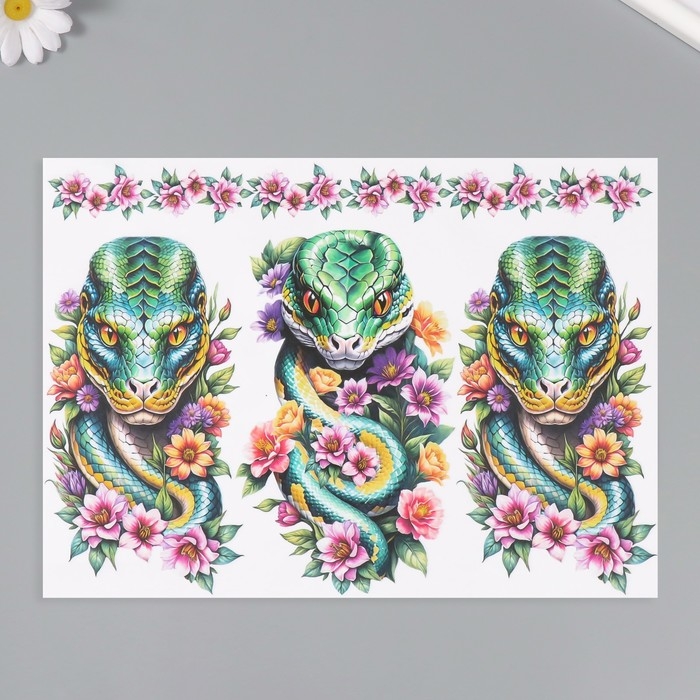 Новогодняя декупажная карта "Змеи в цветах", плотность 45 г/м2, формат А4