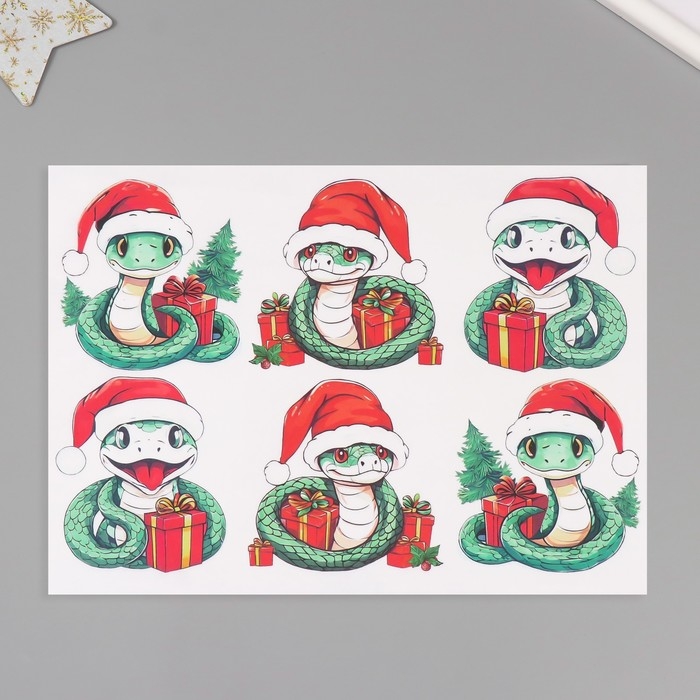 Новогодняя декупажная карта "Змеи в колпачках", плотность 45 г/м2, формат А4