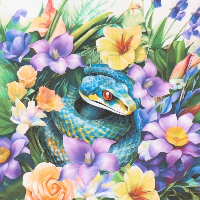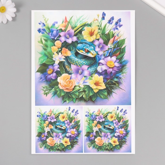 Новогодняя декупажная карта "Змея в цветах", плотность 45 г/м2, формат А4