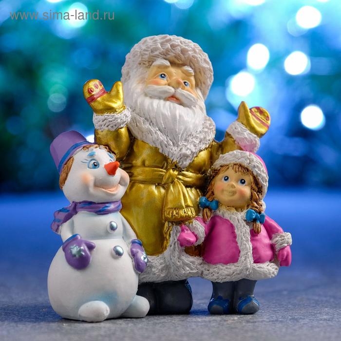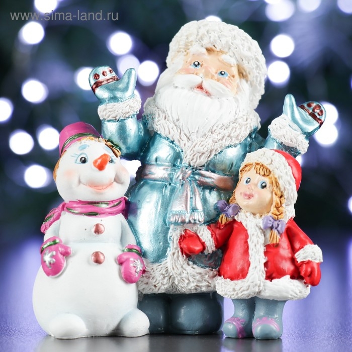 Новогодняя фигура "Дед Мороз cнеговик и девочка" МИКС 10х6х11см