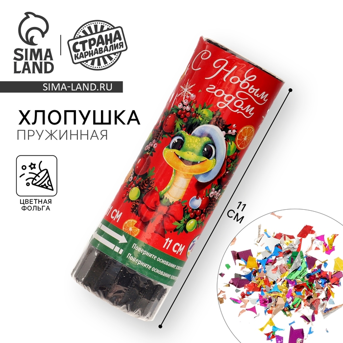 Новогодняя хлопушка пружинная поворотная «С Новым Годом» 11 см