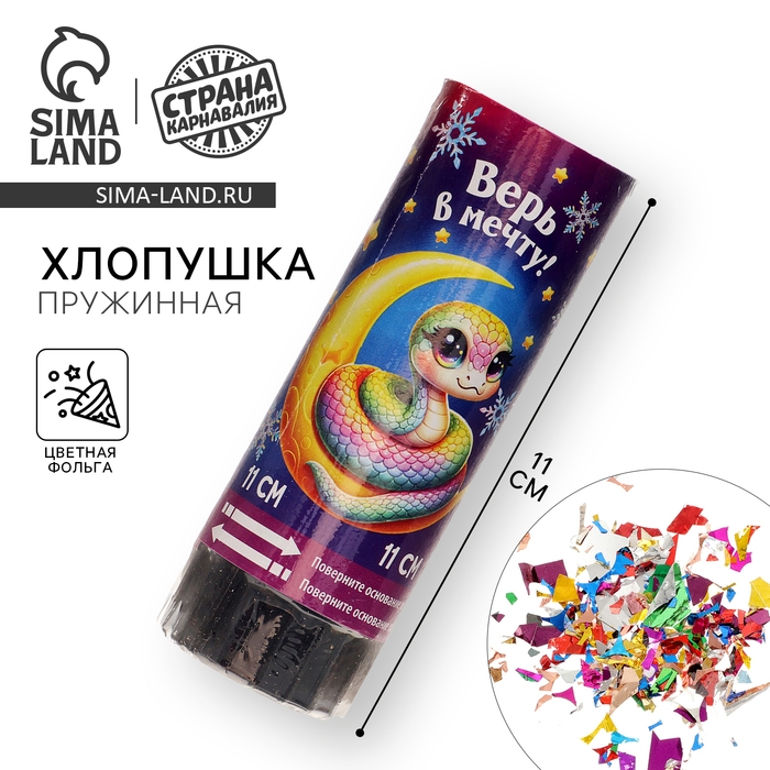 Новогодняя хлопушка пружинная поворотная «Верь в мечту» 11 см