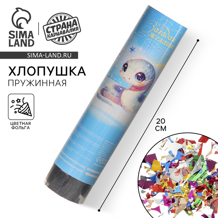 Новогодняя хлопушка пружинная поворотная «Загадай желание» змейка 20 см