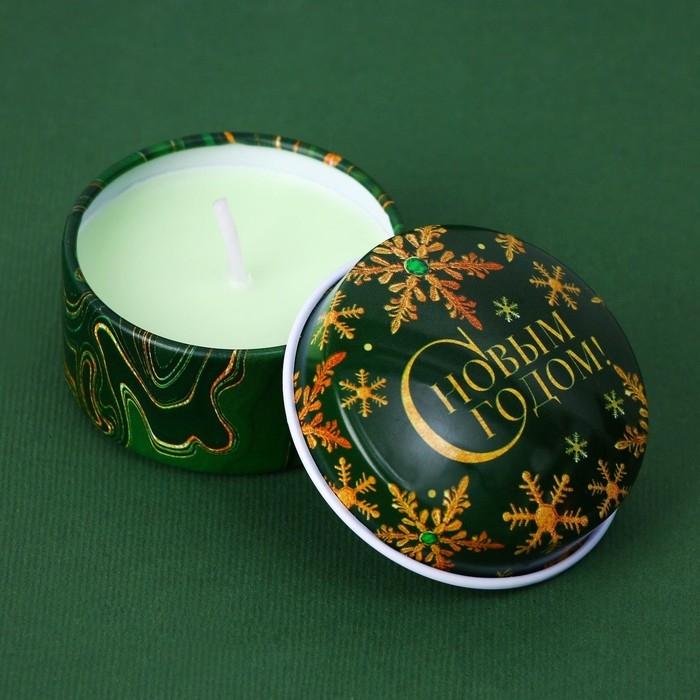 Свеча новогодняя в железной банке «Новый год: Тепла и уюта«Новый год: аромат мята, 4.8 см